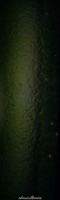 Les médecins aiment bien voiler leur ignorance avec des mots compliqués ; et quand celle-ci se double de leur impuissance, alors ces mots s'habillent de latin ! ce n'est heureusement plus vrai pour cet variante anatomique peu fréquente appelée "cornea guttata", qui signifie cornée avec des gouttes ... La face postérieure (concave) de la cornée est tapissée d'un épithélium (une couche) de précieuses cellules (que les ophtalmologues appellent improprement et par habitude "endothélium") : leur fonction est de faire barrière à l'humeur aqueuse afin d'empêcher celle-ci d'infiltrer la cornée. Quand leur densité est très faible, elles ne sont plus jointives, et l'on observe, au microscope de consultation, des sortes de gouttes qui représentent des hernies de la membrane basale de cet épithélium :